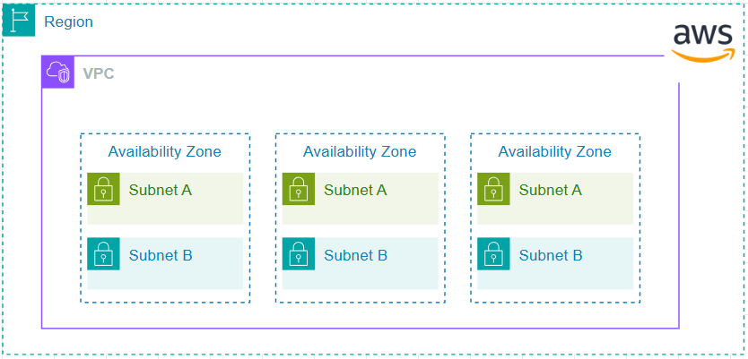 - Availability Zone (AZ): Not tied to subnets; subnets span the whole region